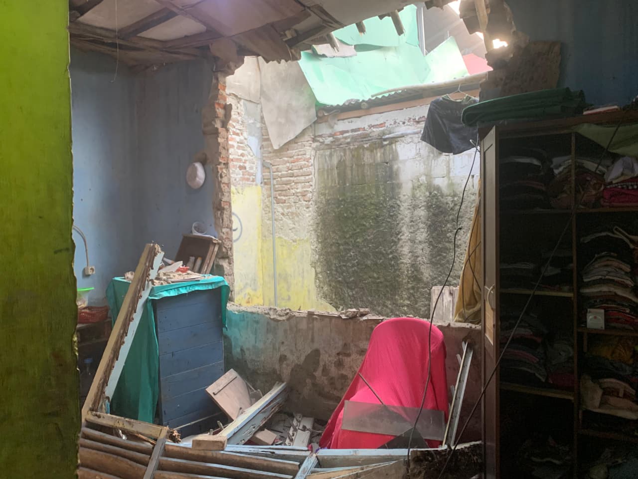 “Waktu kejadian, di rumah cuma ada anaknya satu seketika atap rumah dan dinding langsung roboh diduga karna angin,” ujarnya.